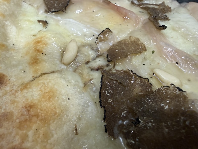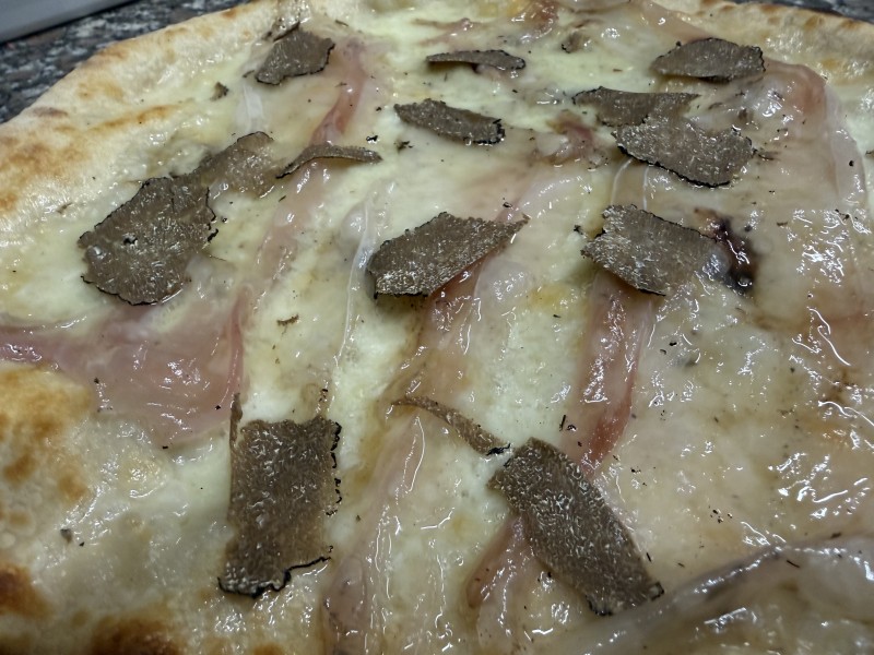 Fiordilatte, saucisse, champignons, sauce truffée, copeaux de parmesan